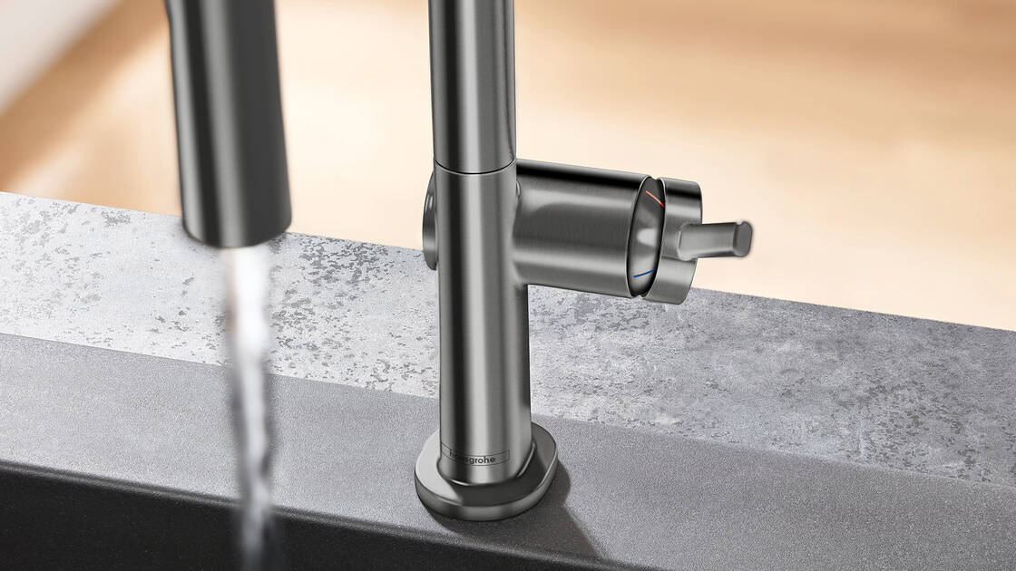 Les produits de marque hansgrohe ont une durée de vie particulièrement longue grâce à la qualité maximale des matériaux et de la fabrication. Cela vaut également pour les robinetteries de cuisine qui restent fonctionnelles et esthétiques pendant plus de 20 ans si elles sont utilisées et entretenues correctement. Une eau dure et calcaire sollicite davantage n’importe quelle robinetterie qu’une eau douce ou détartrée et la fait vieillir plus rapidement. Ce que vous pouvez faire ? Lisez les conseils d’entretien de hansgrohe pour que votre mitigeur de cuisine vous apporte longtemps du plaisir.