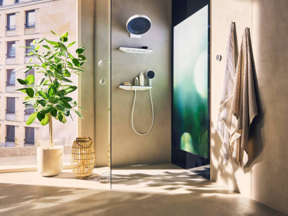 Avec le concepteur de salle de bains hansgrohe, vous pouvez non seulement créer votre salle de bains idéale, mais aussi vous assurer que vos choix sont à la fois élégants et durables, et qu’ils évitent une consommation inutile de ressources.